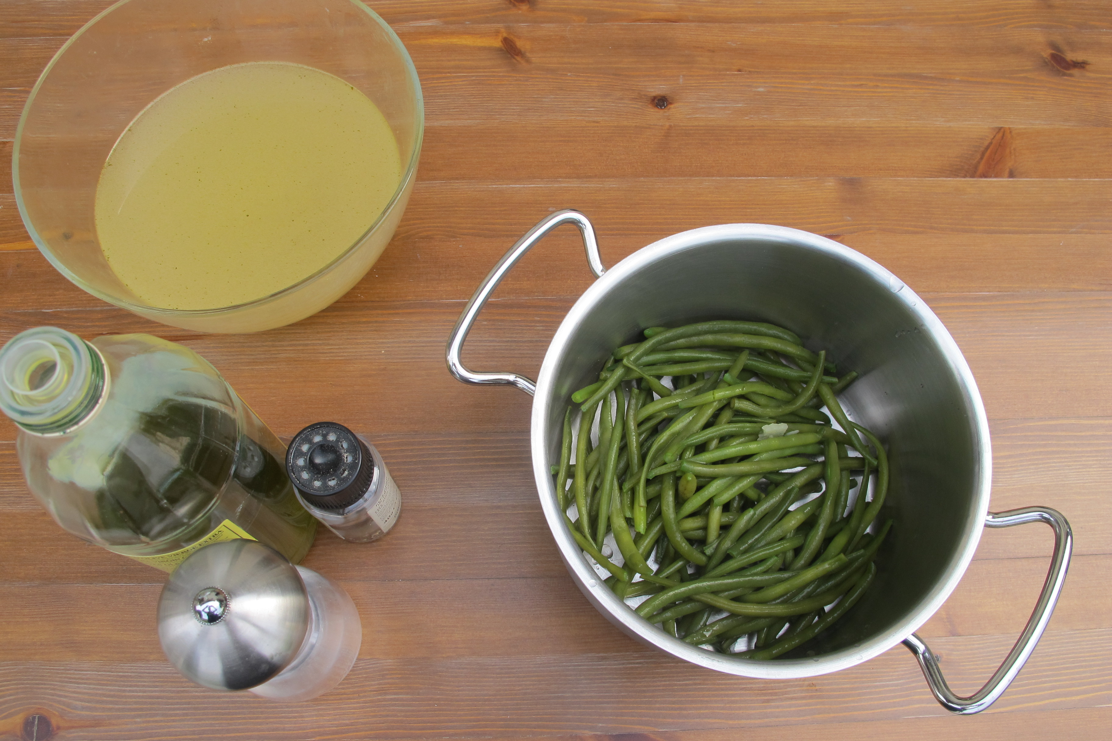 Main ingredients for green bean puree.